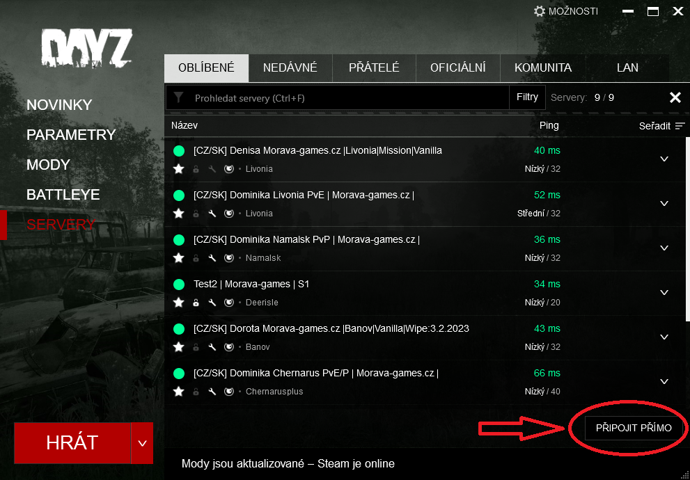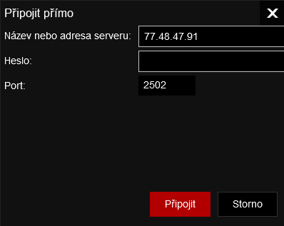 2. Další možností je přímé připojení, které se dá klasicky použít pouze pro servery bez módů jako je Dagmara nebo Denisa ale se přes něj chceme připojit na módovaný server, tak musíme postupovat dle návodu pod prvními obrázky:
