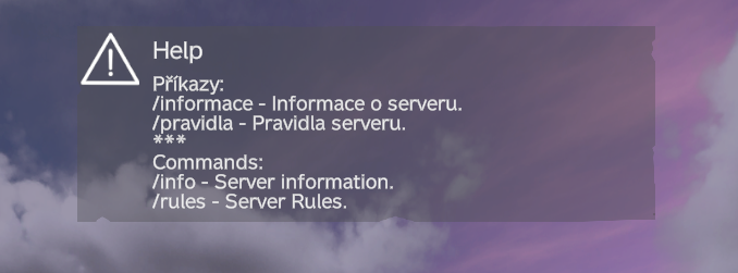 | . | Přidání tečky před text píšete všem na serveru (Global Chat). |